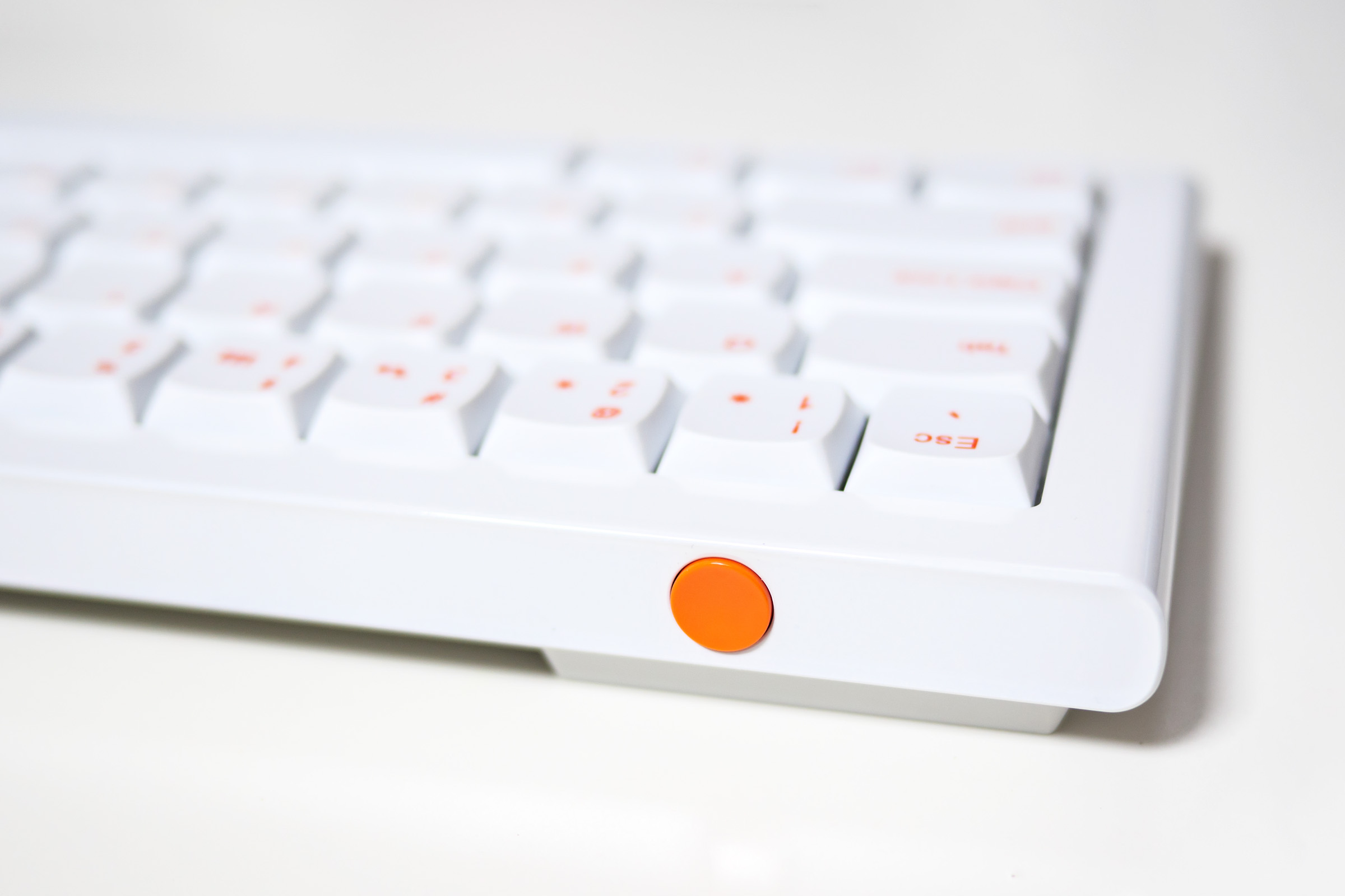 키보드 각인과 동일한 오렌지색의 전원 스위치.