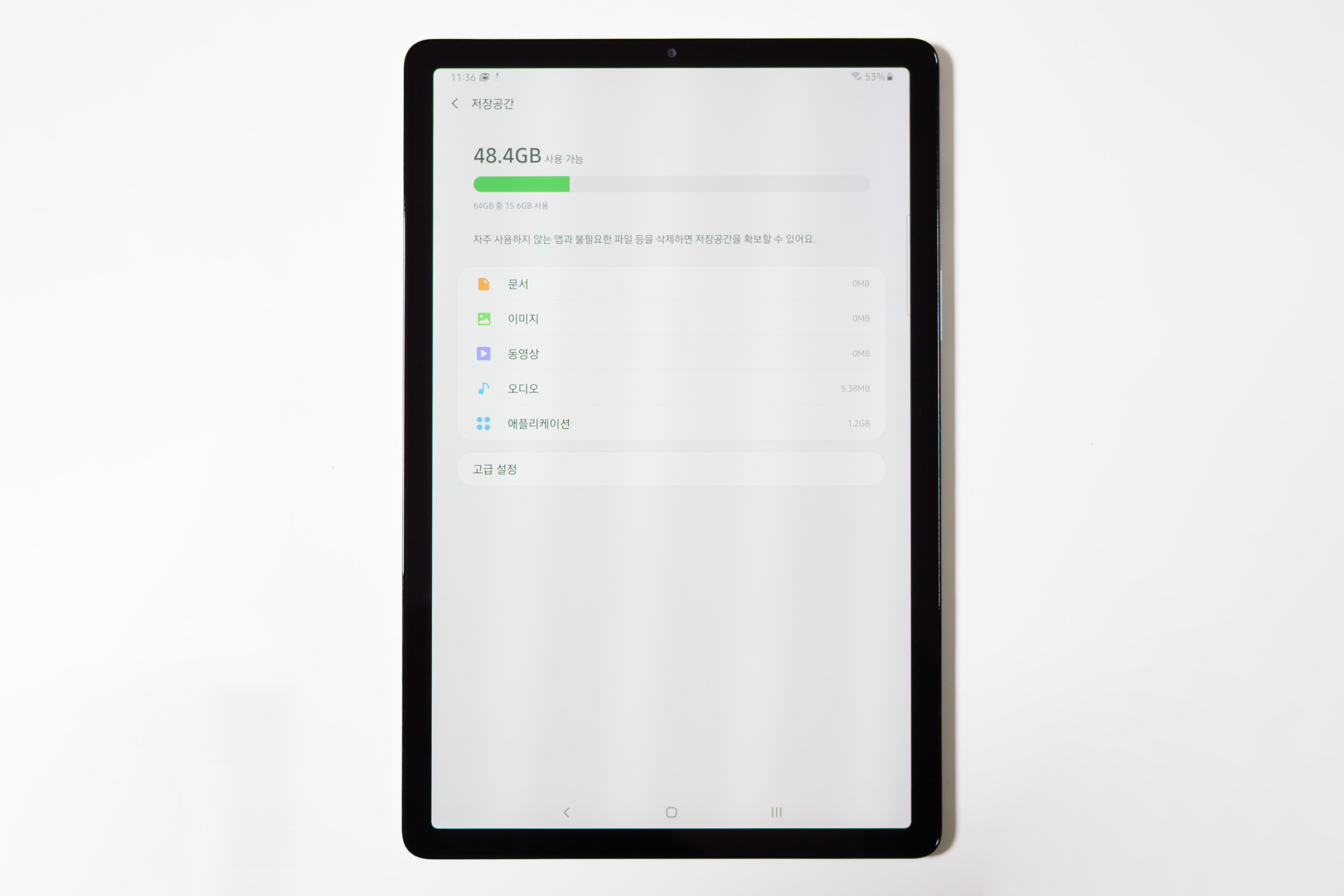 64GB 모델이고 사용 가능한 용량은 요 정도.