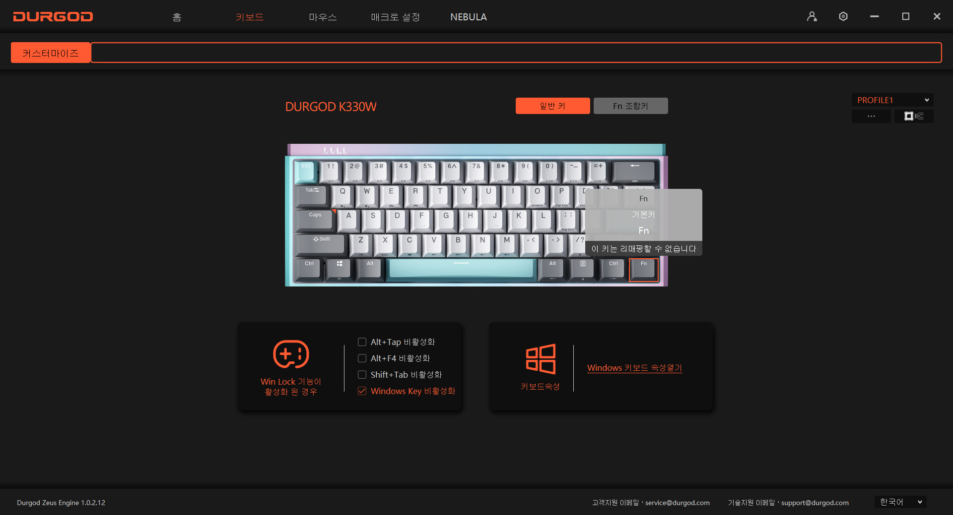 이 네 키와 Fn+WIN, Fn+백스페이스까지