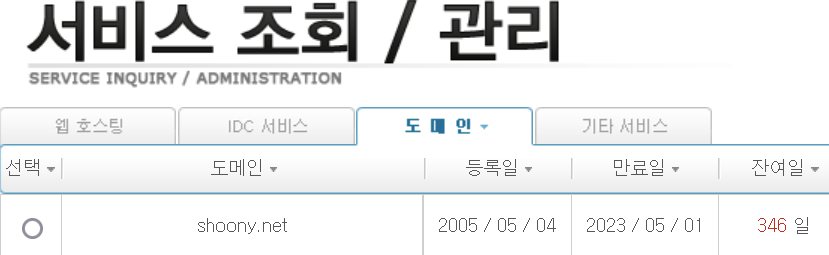 지금 사용 중인 shoony.net 도메인은