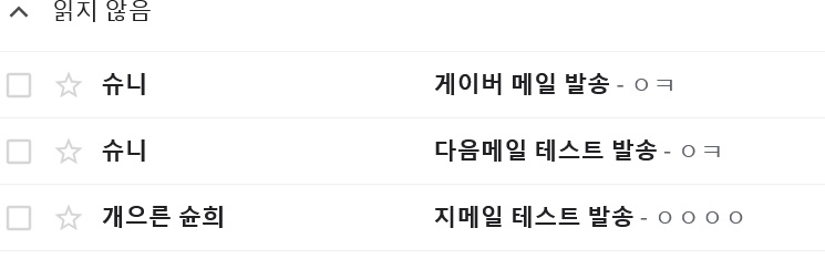 그리고 지메일을 통해 테스트 메일을 보냈는데 안 들어온다.