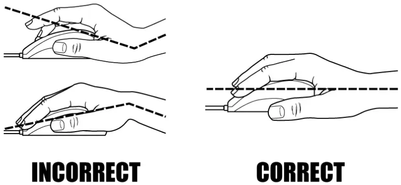 마우스 바닥면과 손목이 수평이 되게 맞춰줘야 했다.