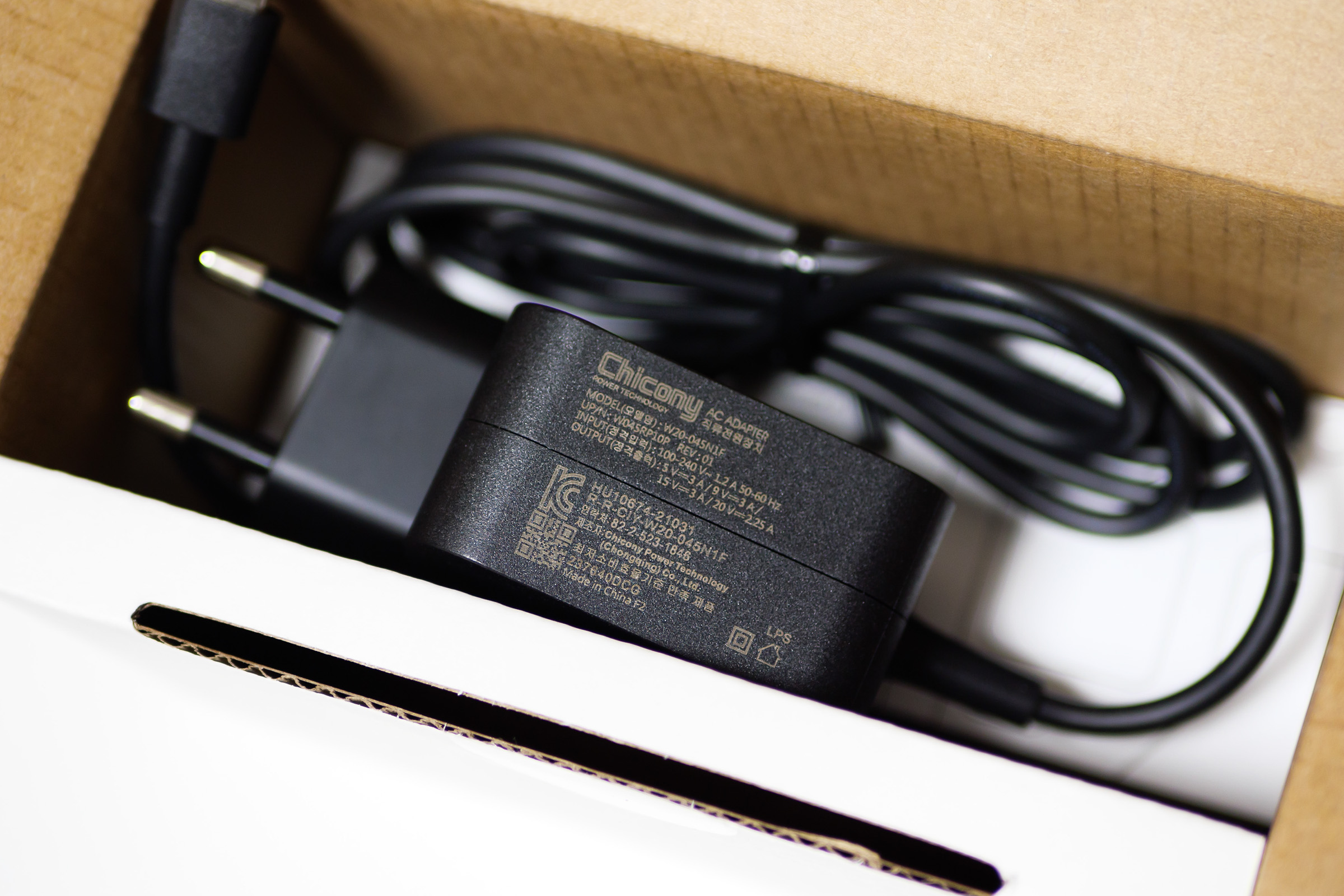 고 옆에는 충전기. 20V 2.25A니까 45W 스펙이다.
