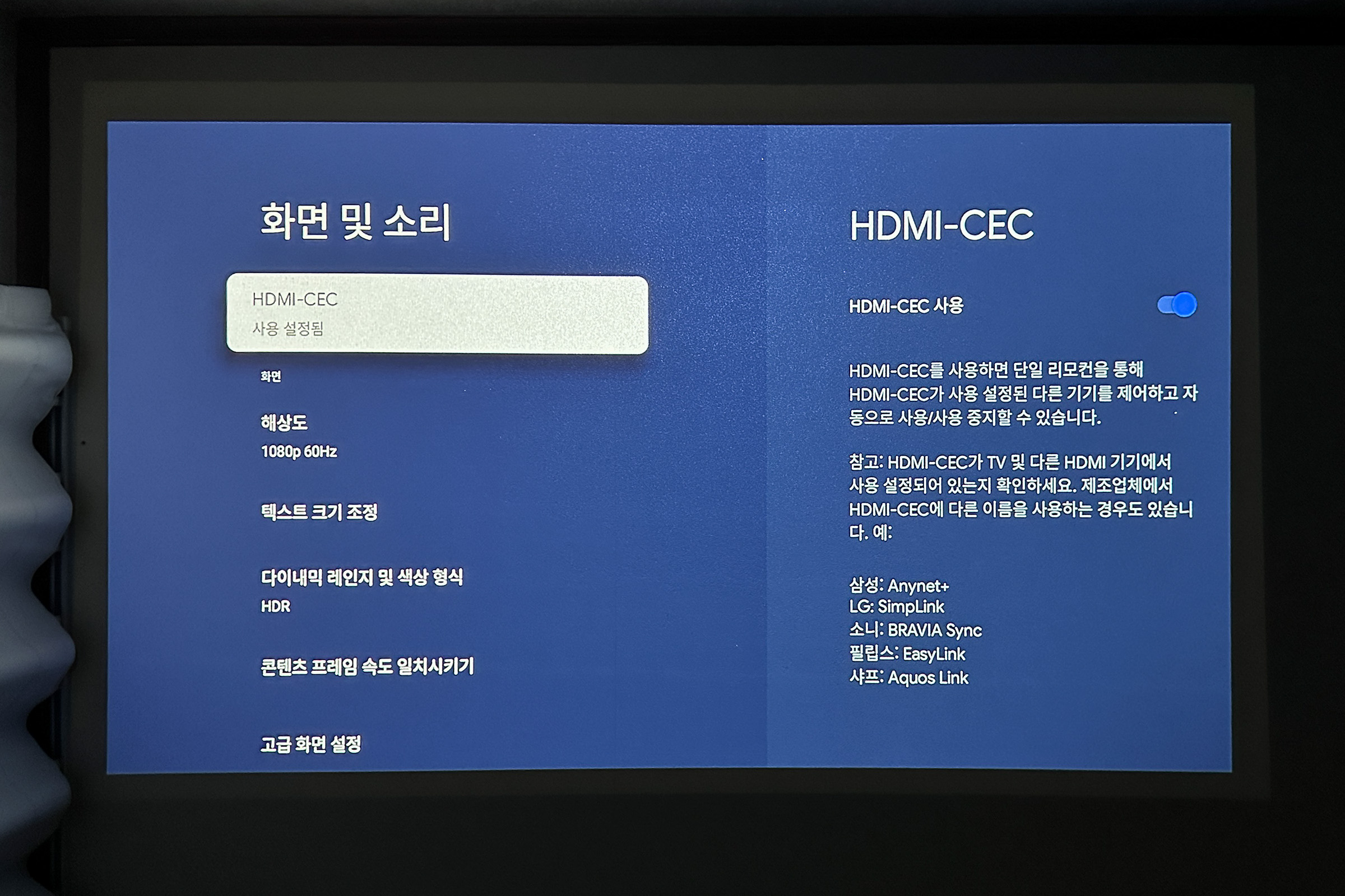 아무튼, 이건 HDMI-CEC를 제대로(?) 지원해서