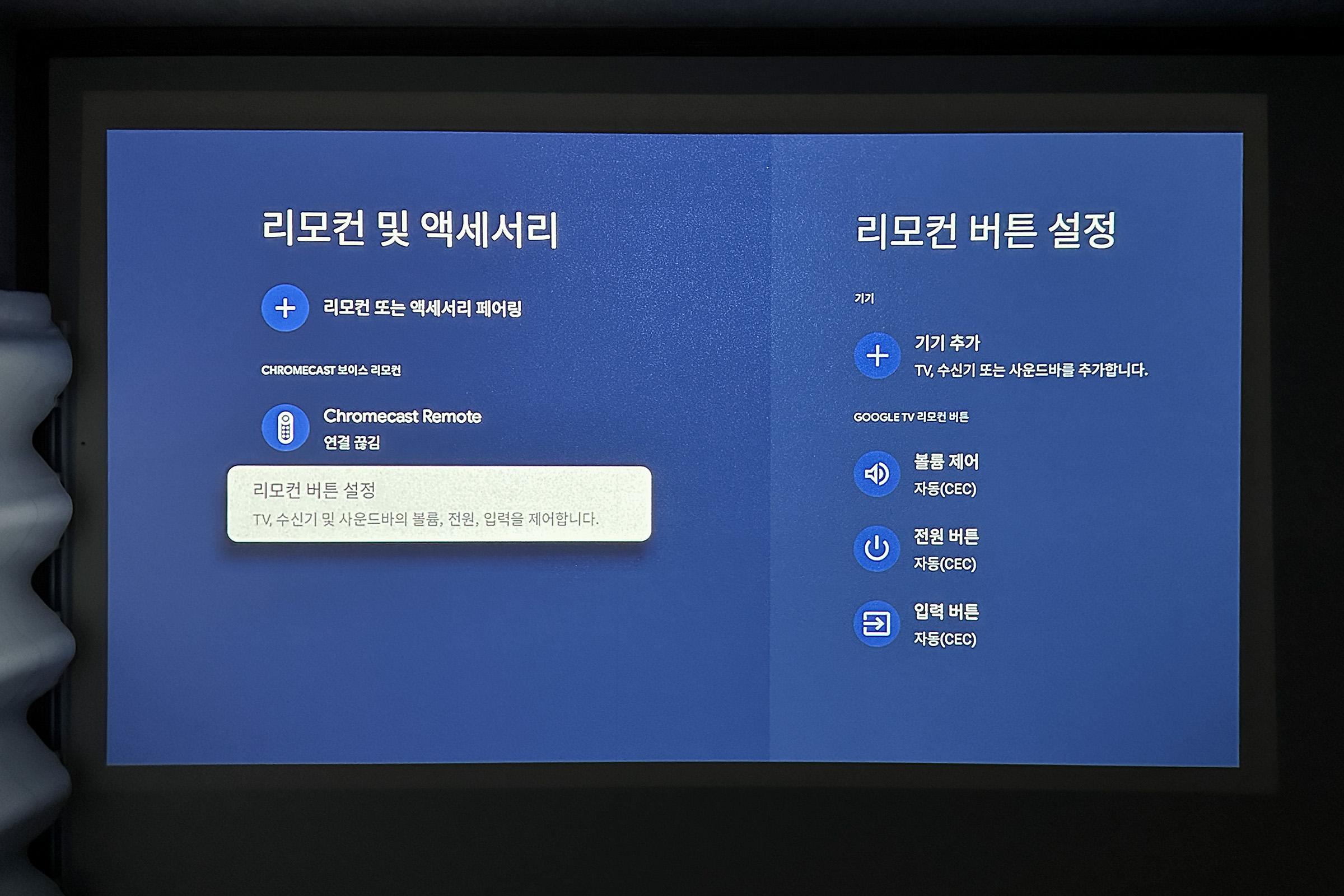 크롬캐스트 리모컨으로 TV(프로젝터)를 조작할 수도 있음.