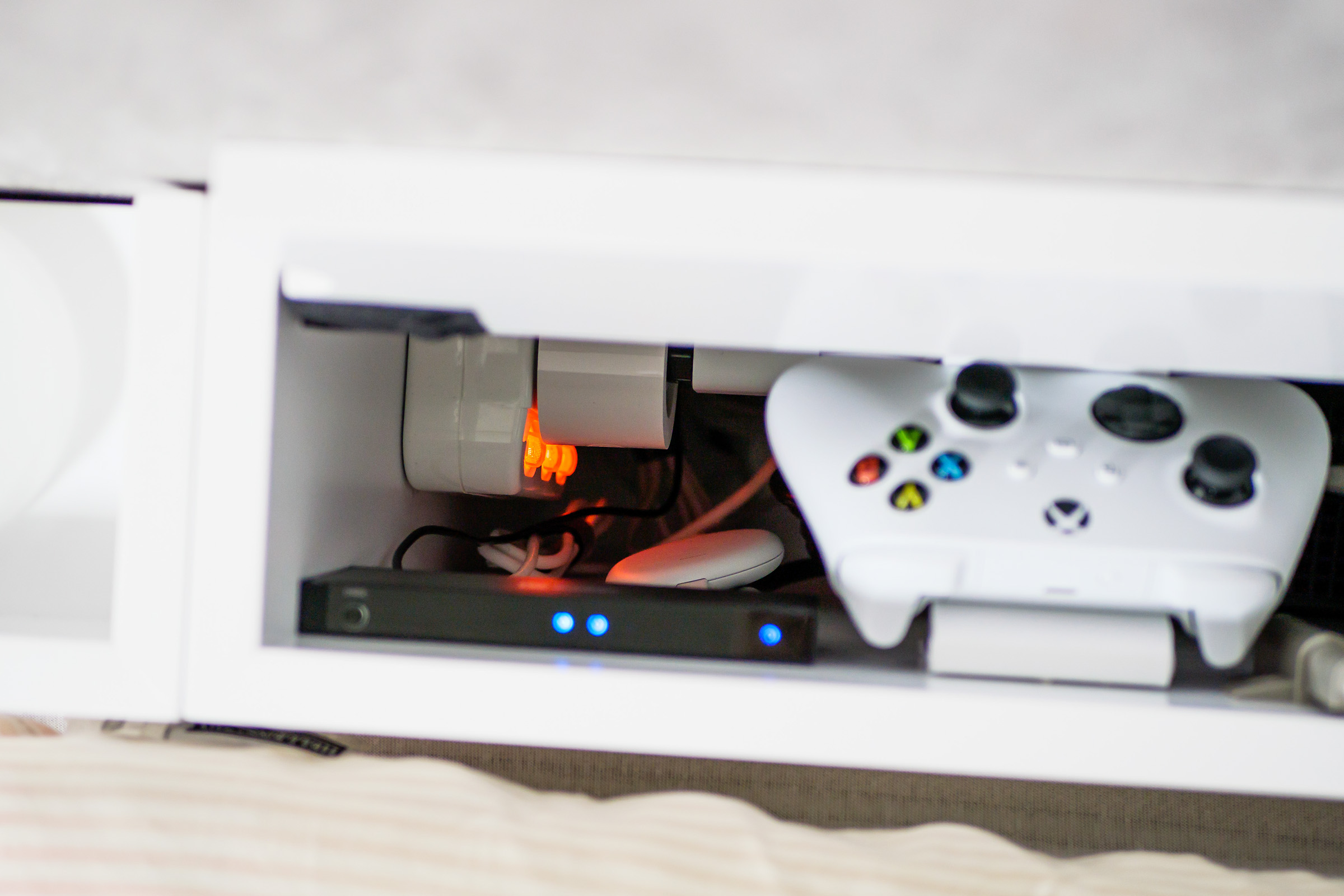 엑박을 쓸 때처럼 수납함 뚜껑을 열 필요도 없어졌다.