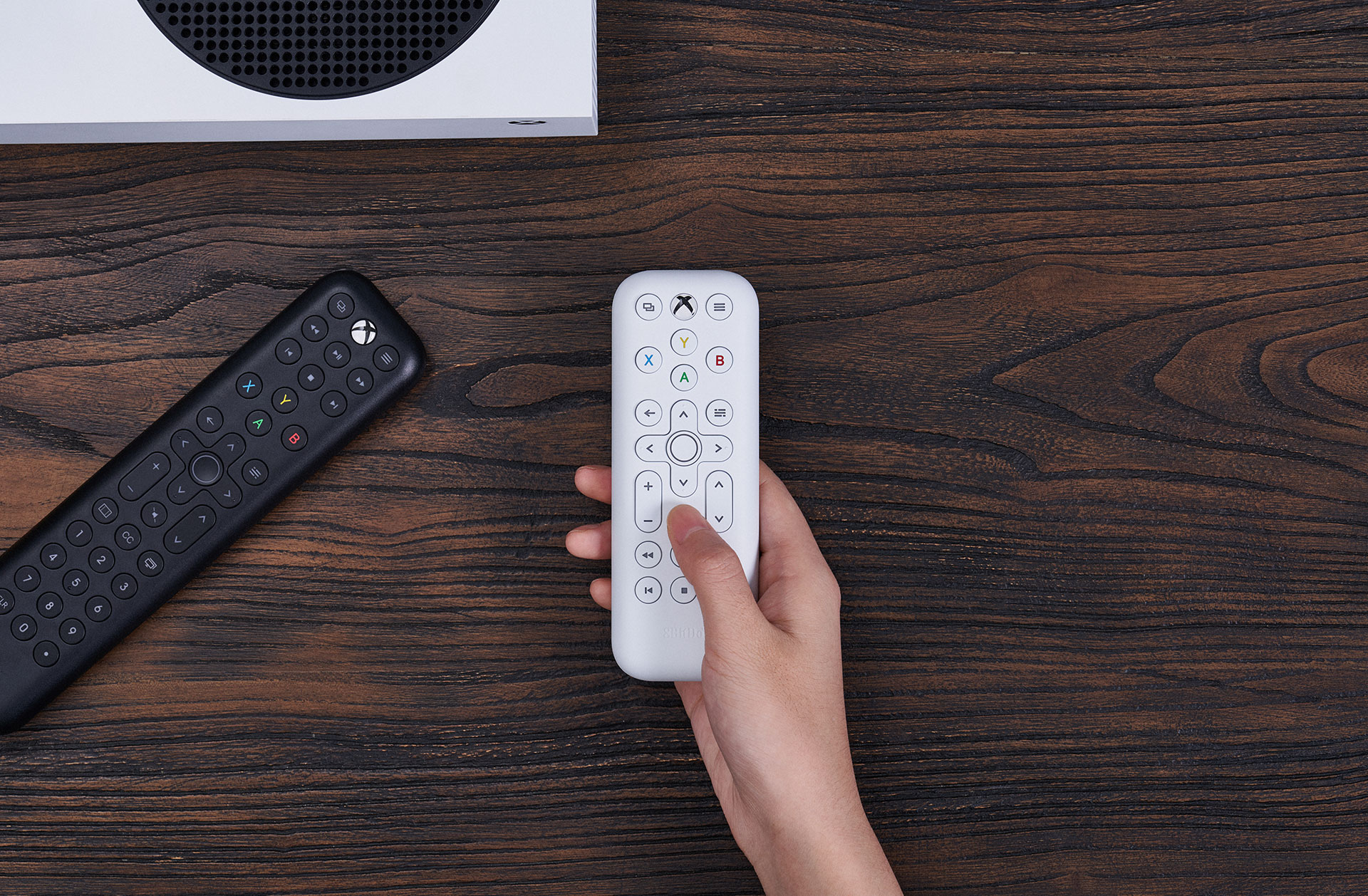 엑박이 IR 리시버를 내장하고 있으니 그냥 리모컨을 사면 됨.