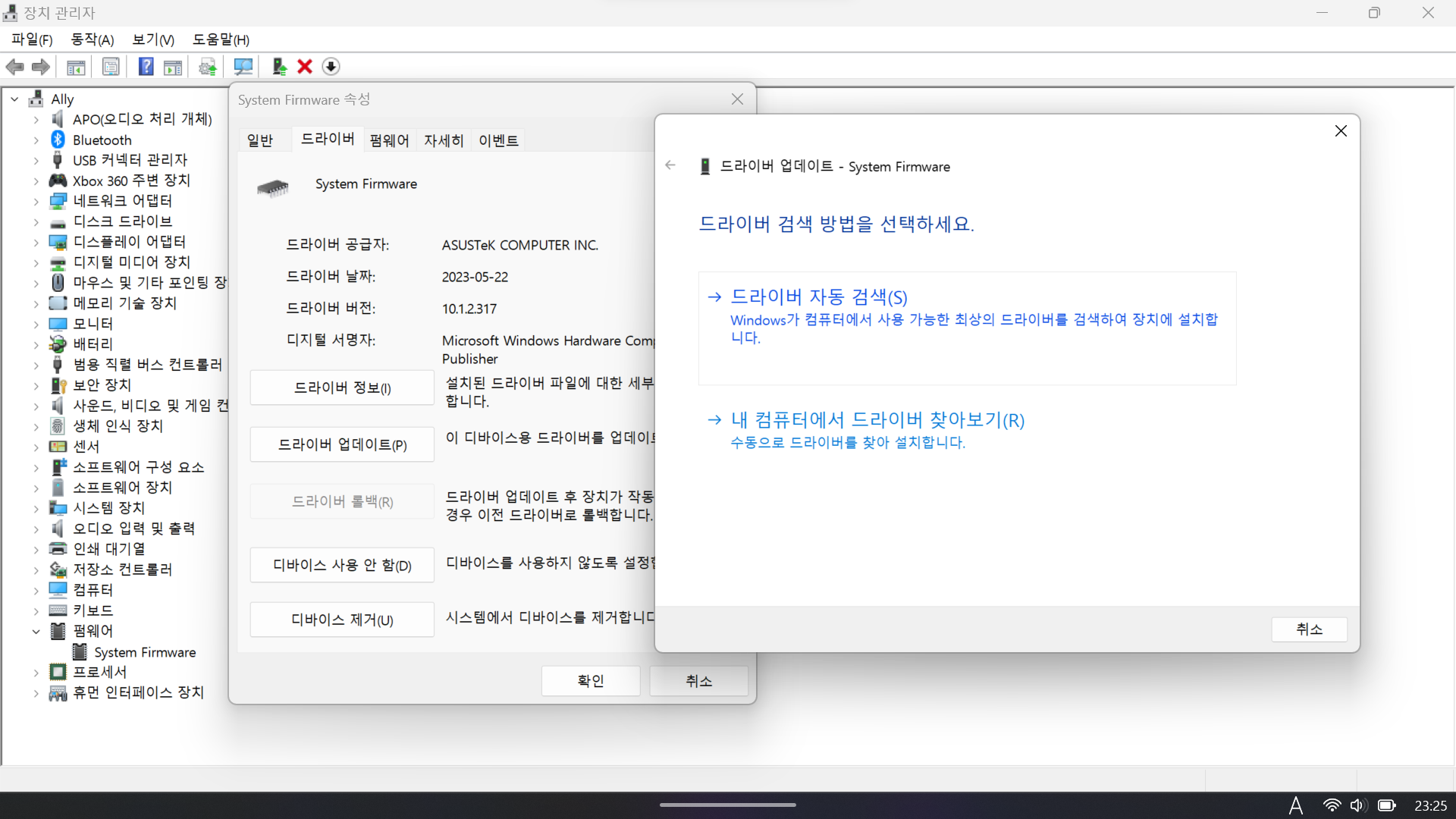 장치 관리자에서 펌웨어를 비활성화하고 하면 된대서