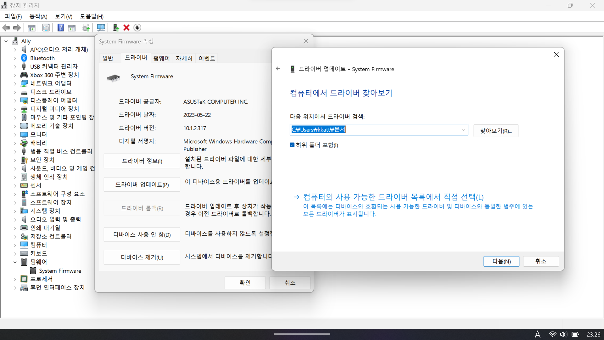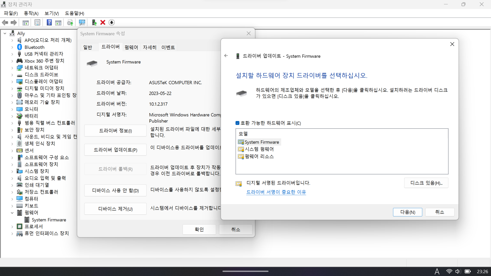 장치 관리자에서 펌웨어를 비활성화하고 하면 된대서