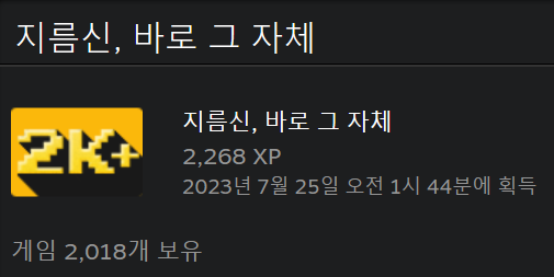 스팀 라이브러리 lv.02 2023.07.25 01:59 혼자 노는 이야기 생각보다 훨씬 빠르게 찍어버렸다. 작년 12월에 1,000개를 찍었고 대충 일 년에 1,000개 정도를 예상했지만 이 속도면 2030년까지 1만 개는 가뿐하겠는데? 오께이, 빠르게 가보자고. 그래서 게임은 언제 하지... 공유하기 게시글 관리 Lowmantic Life! 댓글 공유하기 다른 글 댓글 이 글 공유하기 구독하기 구독하기 카카오톡 카카오톡 라인 라인 트위터 트위터 Facebook Facebook 카카오스토리 카카오스토리 밴드 밴드 네이버 블로그 네이버 블로그 Pocket Pocket Evernote Evernote 다른 글 내 맘대로 결산 2023 - 올해의 음악 Top 100 내 맘대로 결산 2023 - 올해의 음악 Top 100 2023.12.31 3000만큼 3000만큼 2023.11.27 드디어 집나간 운이 돌아오는 것인가 드디어 집나간 운이 돌아오는 것인가 2023.05.11 왜 메인? 왜 메인? 2023.05.05 다른 글 둘러보기