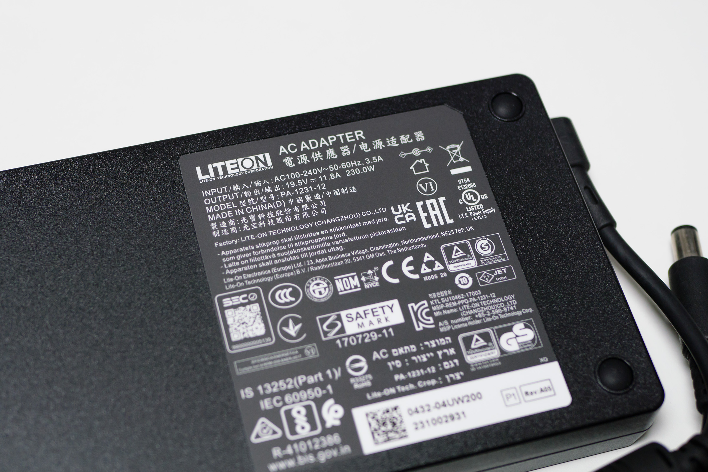 19.5V 11.8A, 230W짜리 벽돌의 제조사는 라이트온.