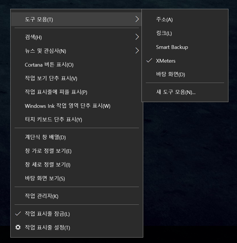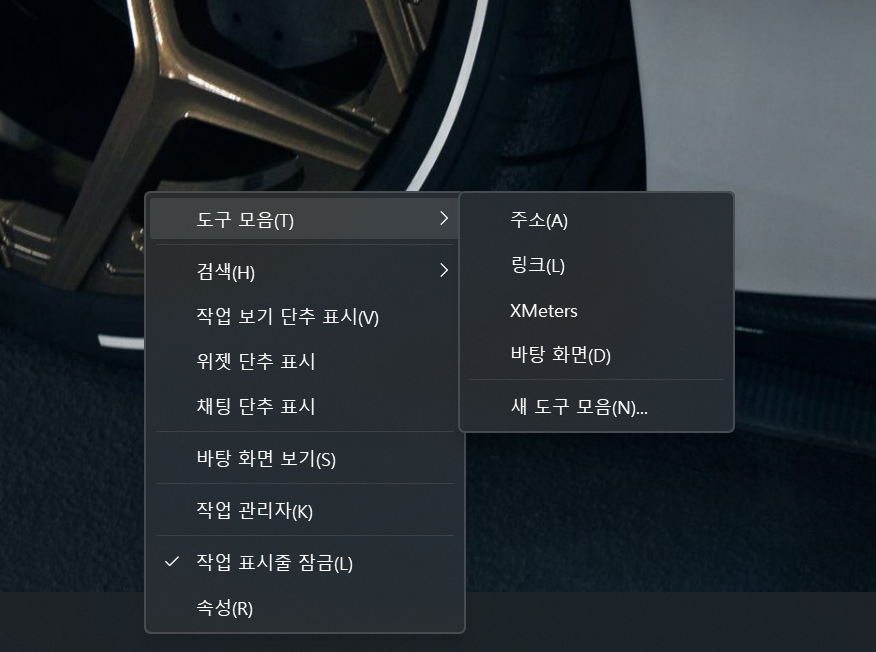작업 표시줄 우클릭 메뉴에 도구 모음이 안 뜸.