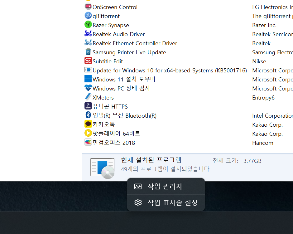윈도우 11은 작업 표시줄에서 우클릭해도