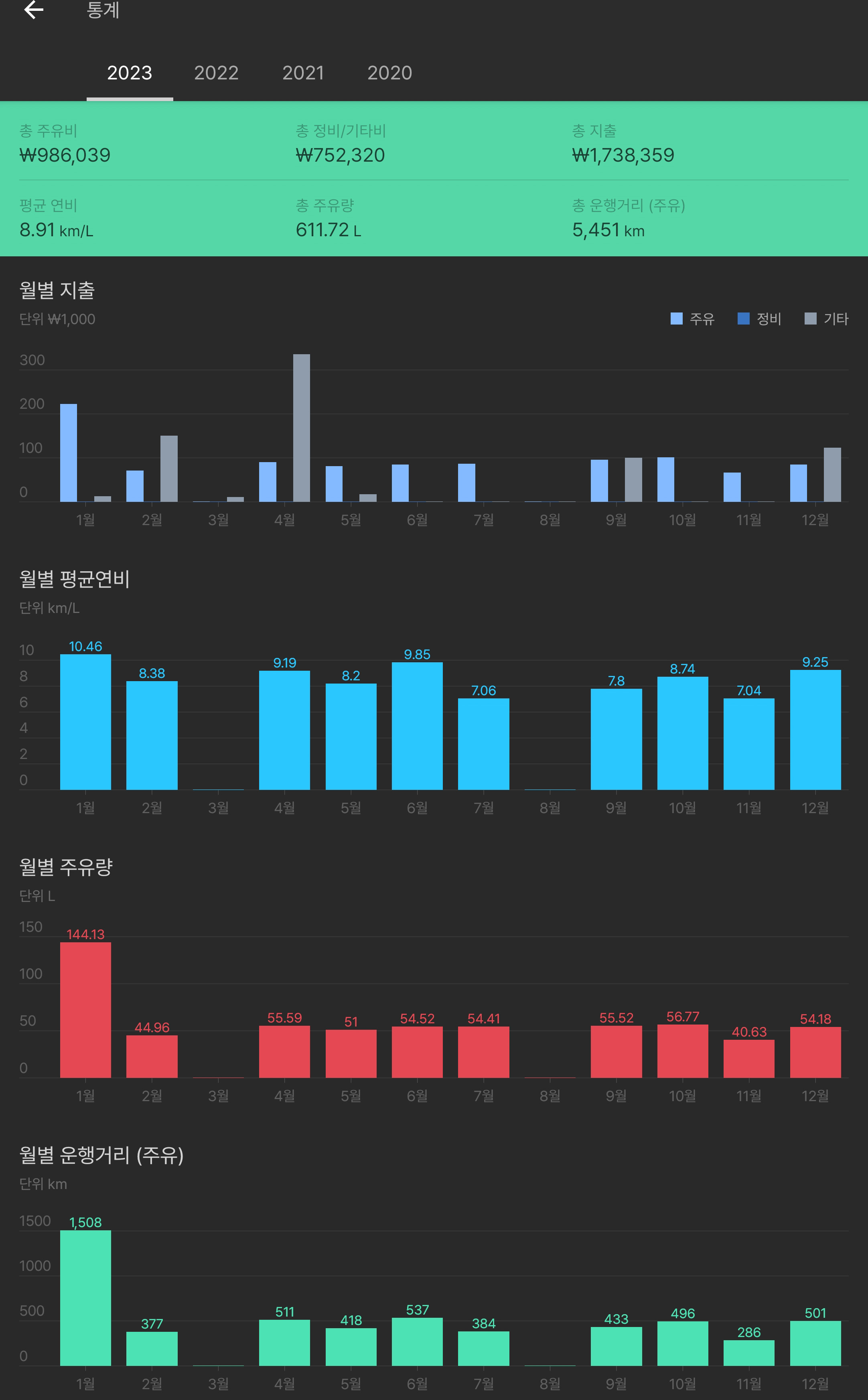 올해는 부산도 안 가서 내년엔 주행거리가 다시 줄어들 듯.