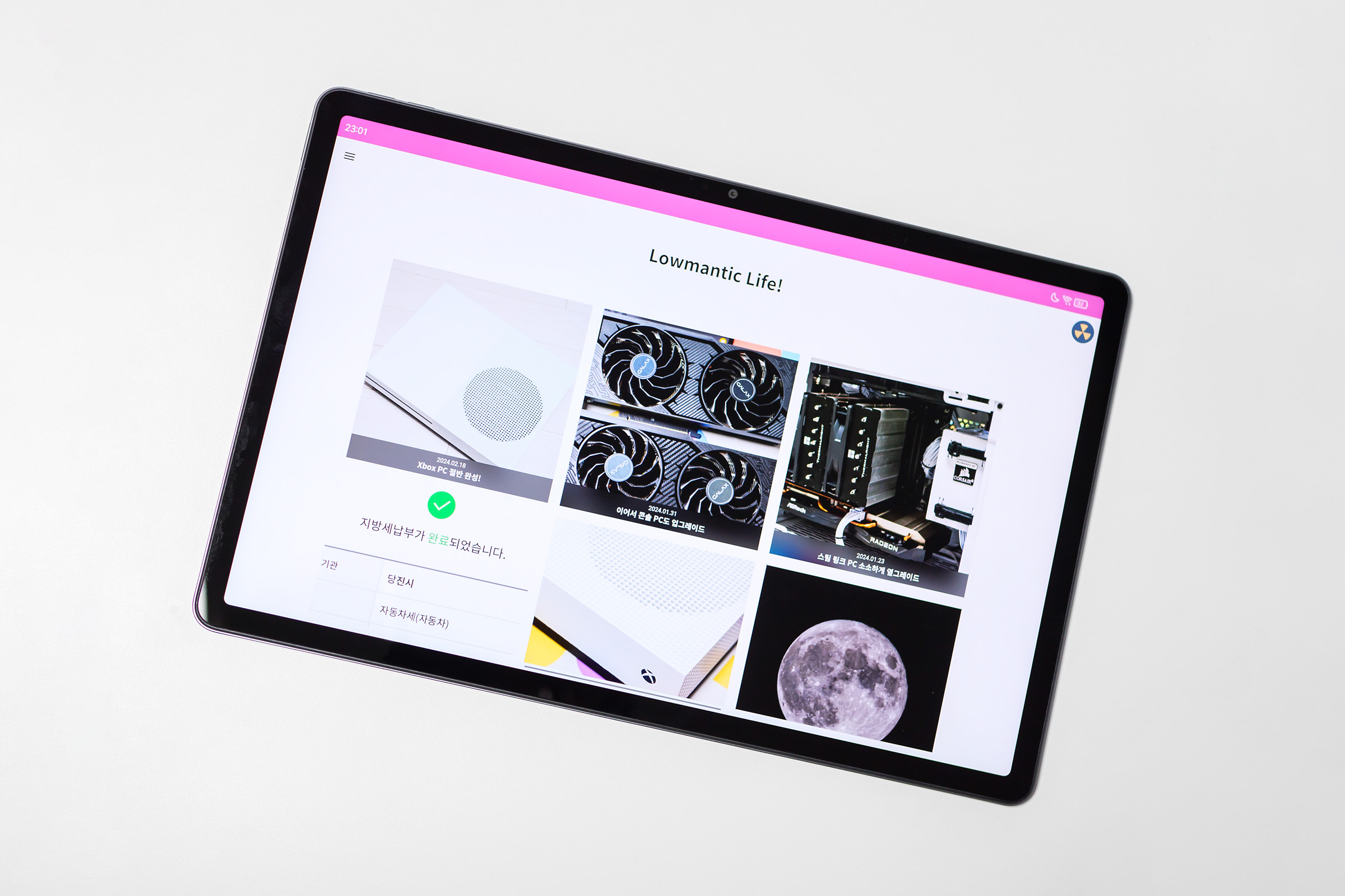 앞모습은 요즘 태블릿들 기본값인 석판 룩이고