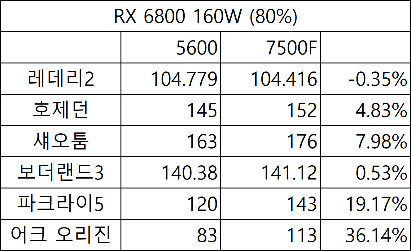 라이젠 5600 시스템보다는 조금 더 크게 벌어졌지만