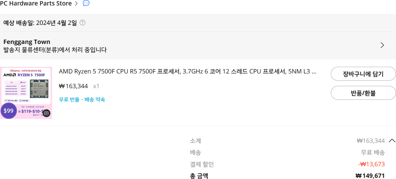 엑박 컴에 쓰기 위한 7500F은 이미 하나 가지고 있다.