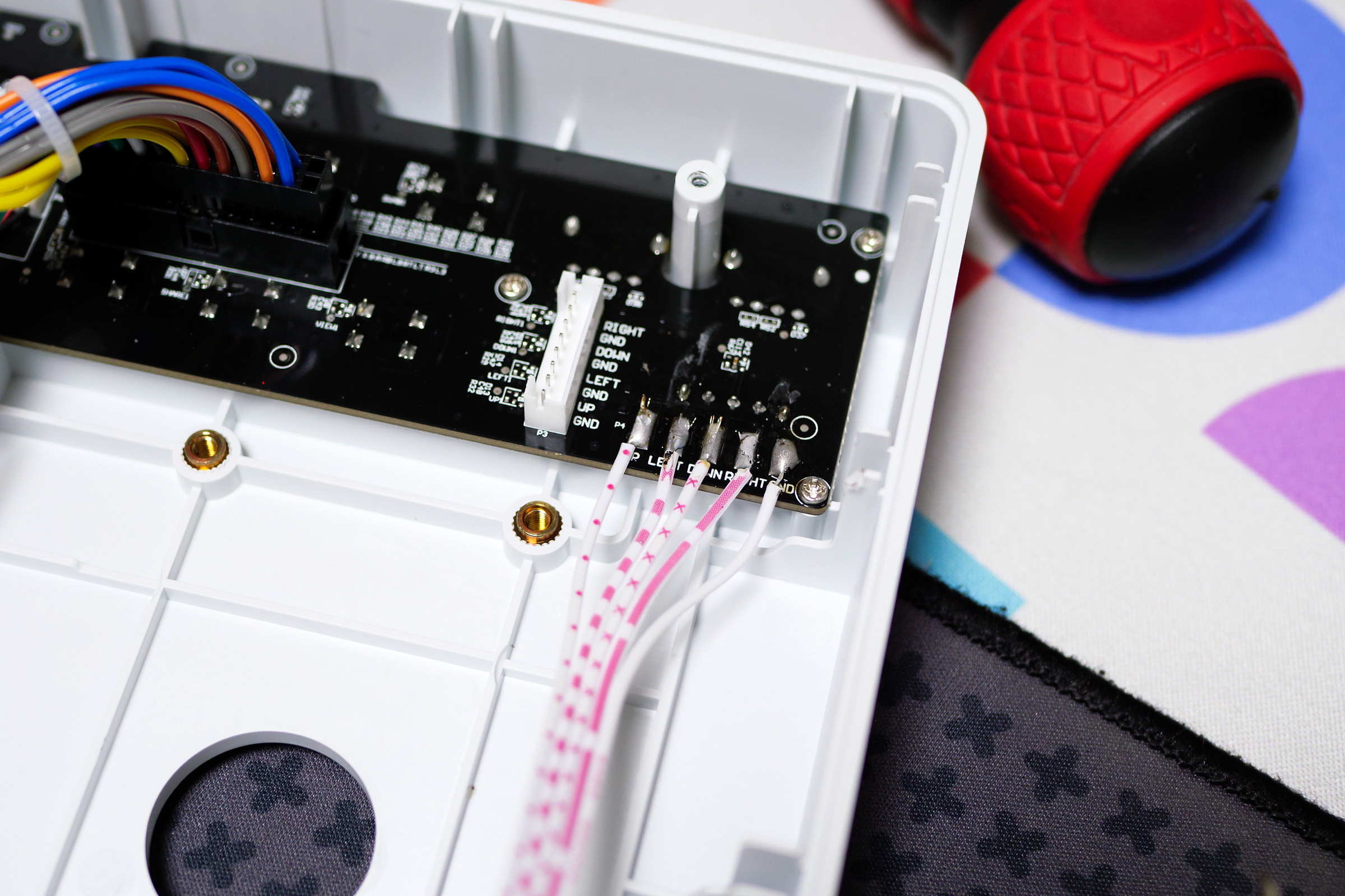 각 버튼에 어떤 색 전선이 연결되는지 붙여놨다.