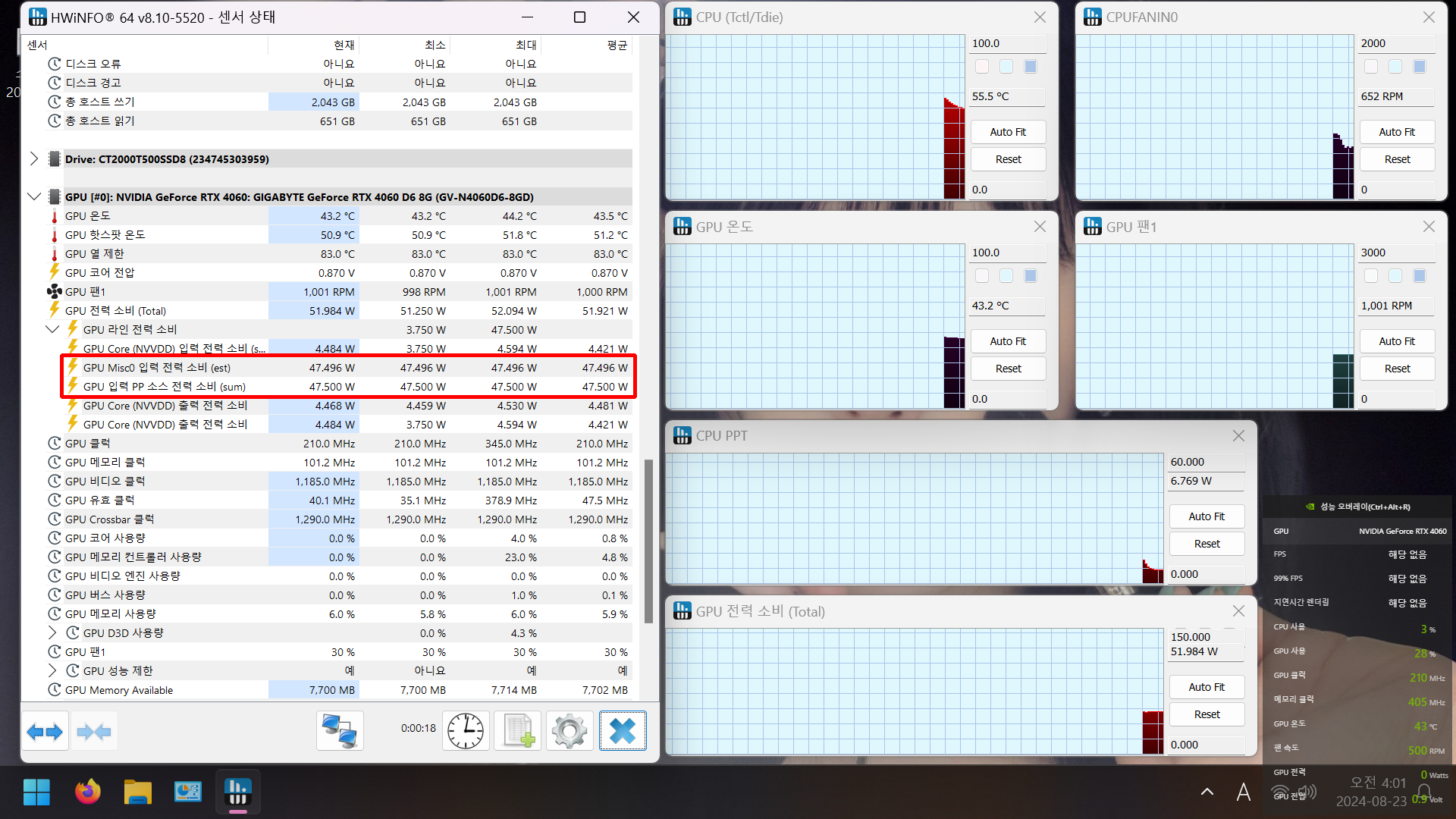 HWINFO의 빨간 네모 속 두 부분이 47W로 고정된 상태던데