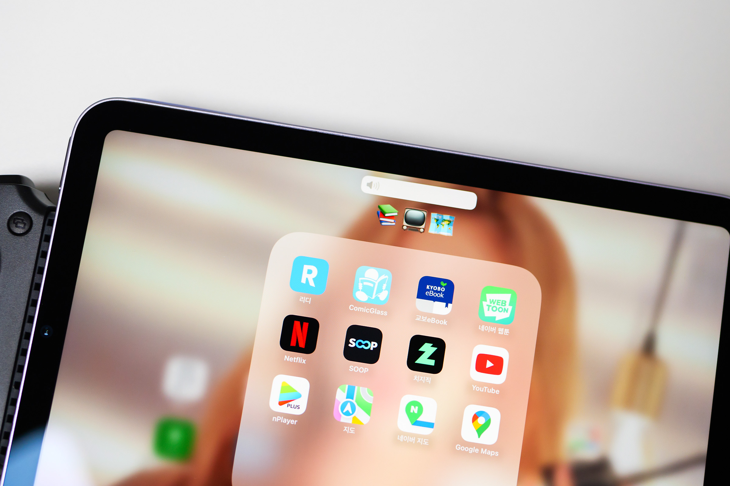 은 끄트머리가 볼륨 버튼을 딱 건든다.