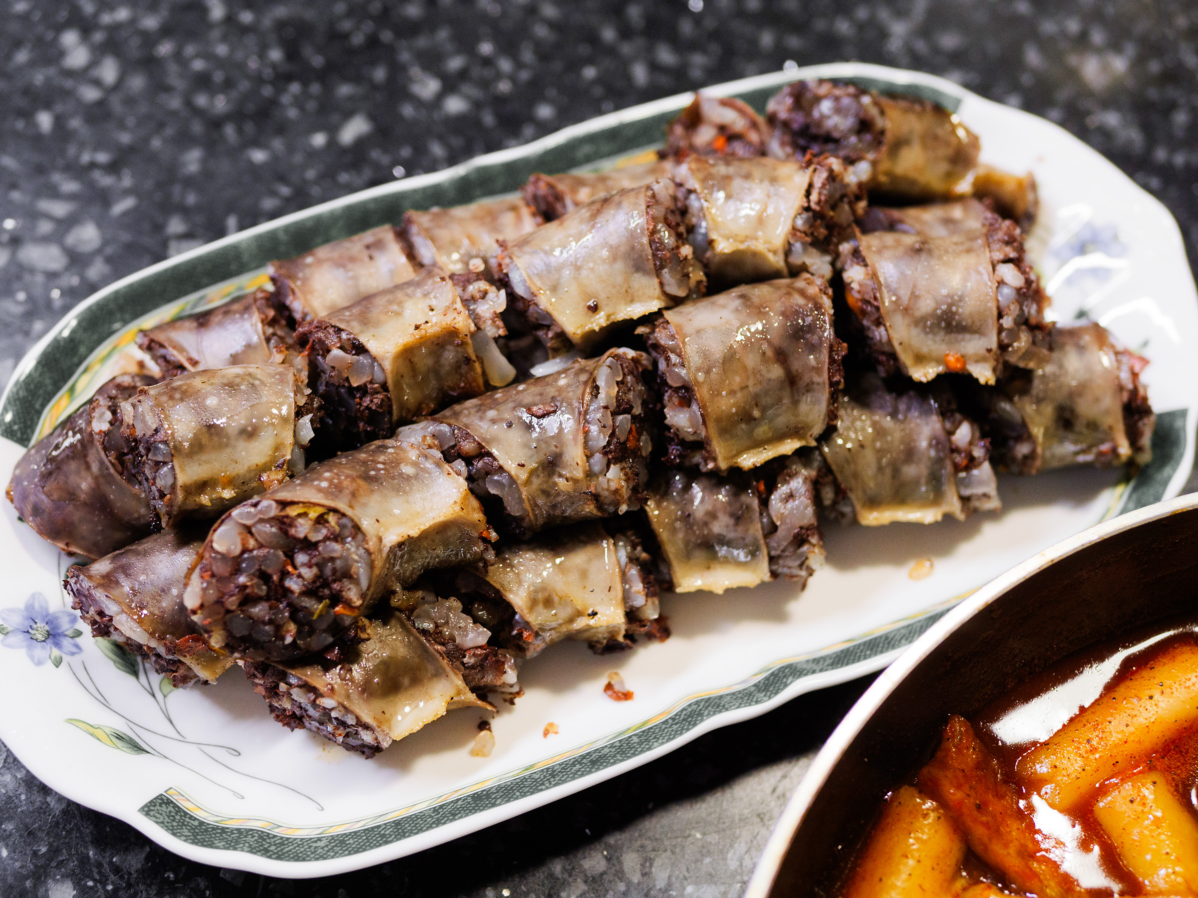 김이 모락모락 나는 순대는 존내 뜨겁다.