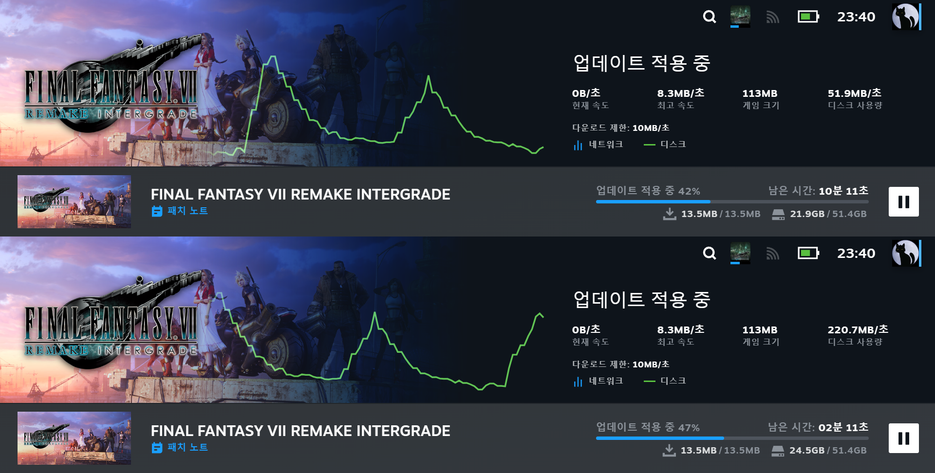 그래도 800Mbps라는 속도니까 게임을 새로 다운받는다면