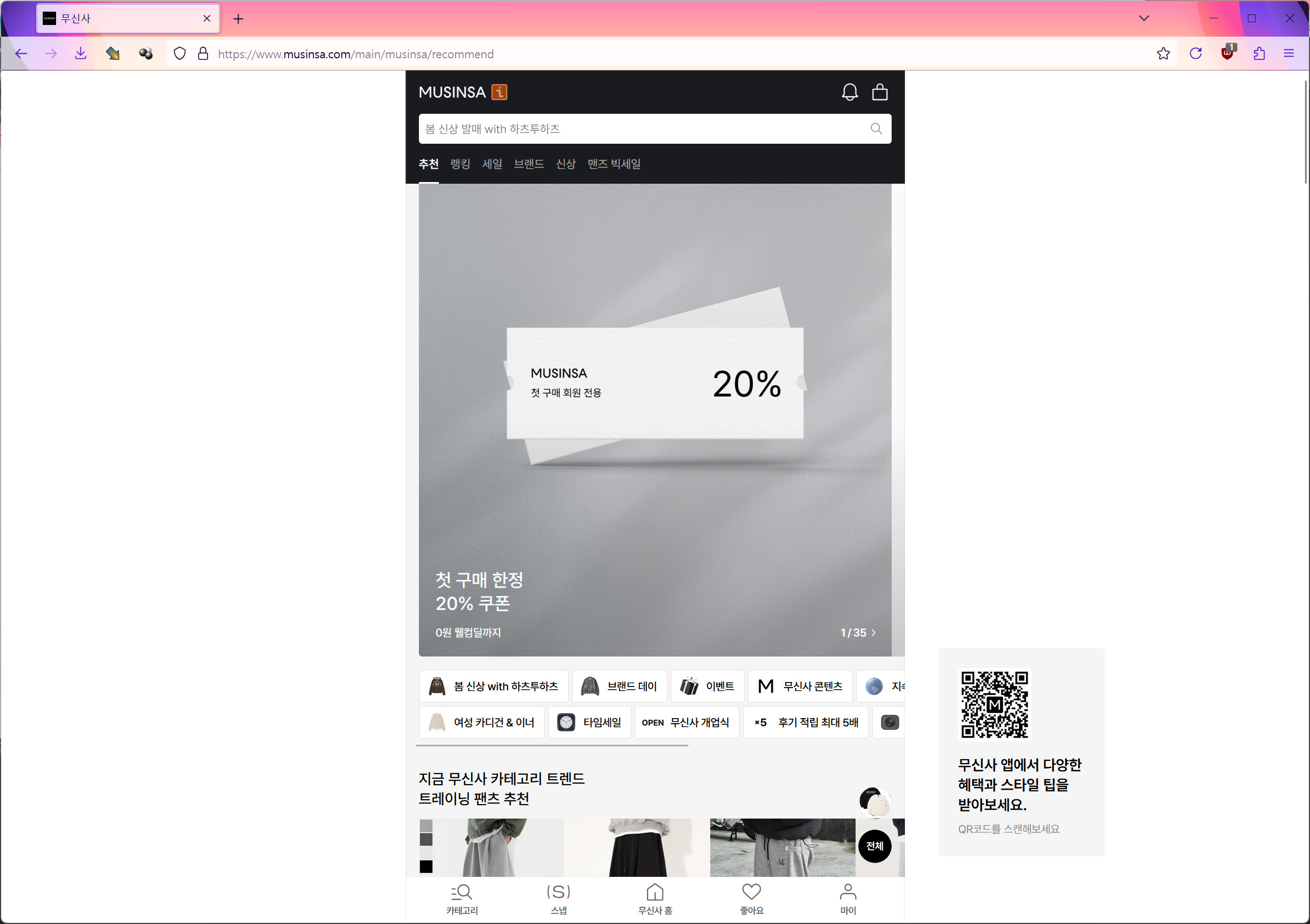 무신사는 정신 차렸는지 이 개같은 유행에서 발 뺌