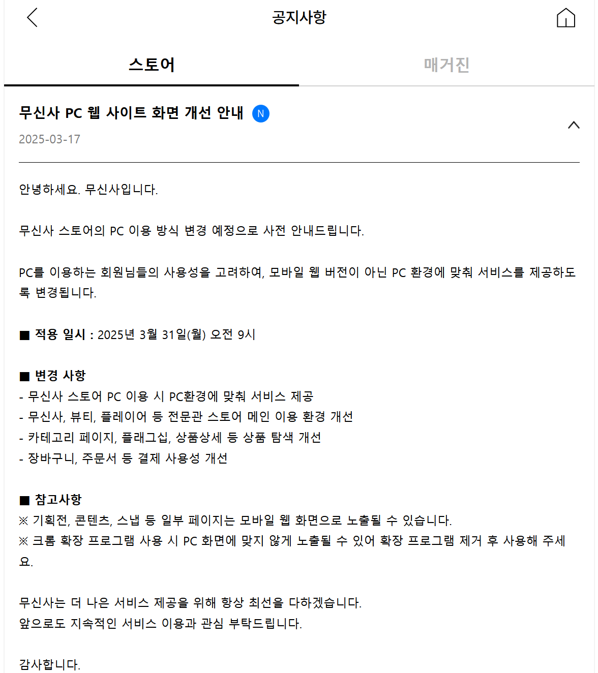 스마트폰용으로 만든 이 좁디좁은 페이만 남긴다고?