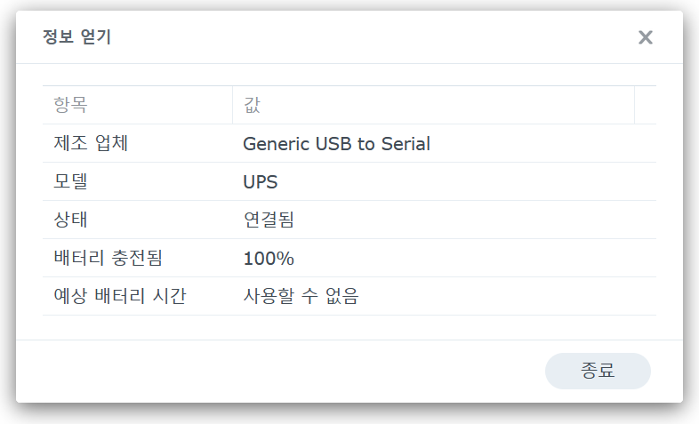 파일 서버도 UPS 연결하니 배터리 뜨고요.