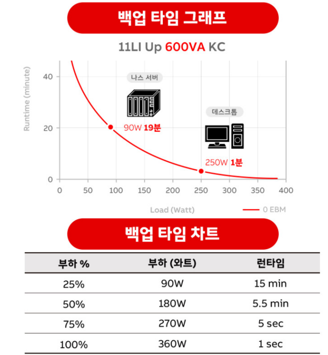 브로슈어에는 80% 부하에서 최소 5분 버텨준다는데